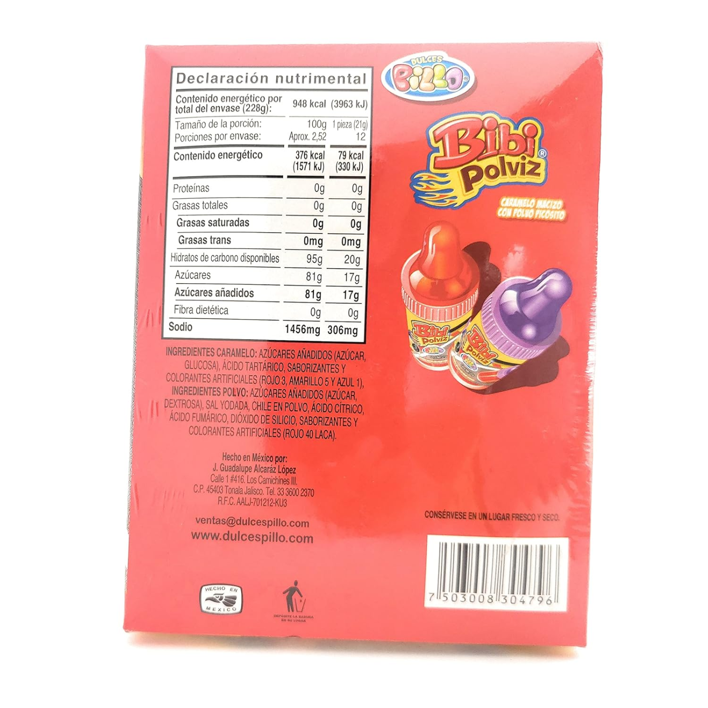 If you love the combination of sweet and spicy, Dulces Pillo's Bibi Polviz Caramelo Macizo with Picosito Powder is the perfect treat for you. Ideal for candy lovers who crave something a little different, this caramel sucker with a kick of chili powder is designed to bring excitement to your taste buds with every lick.