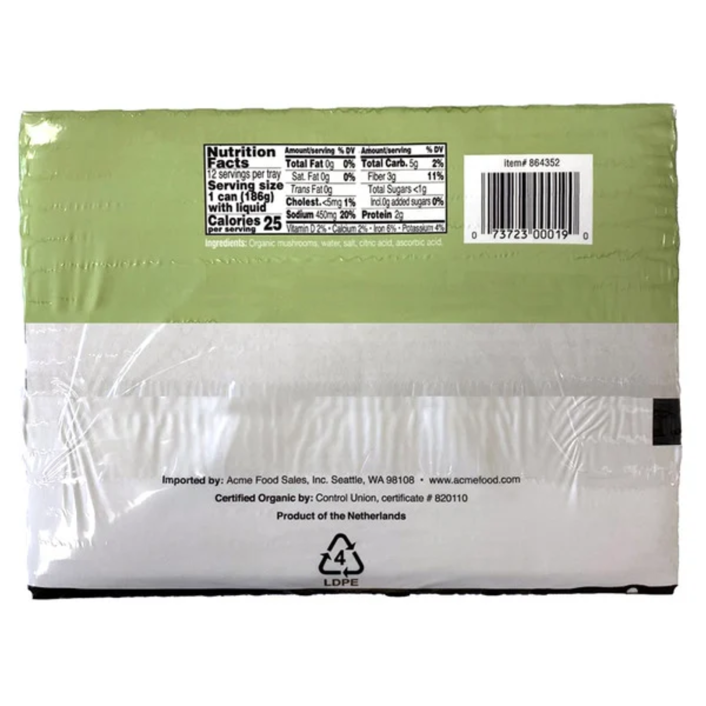 Ingredients: Organic mushrooms, water, salt, citric acid, ascorbic acid