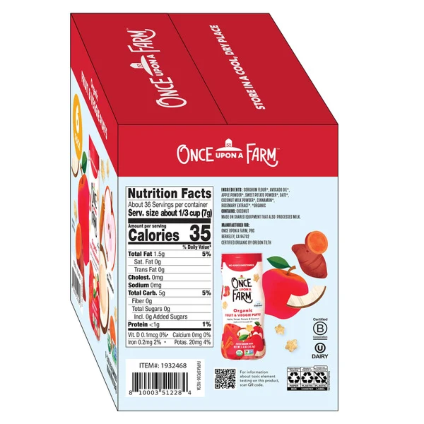 Made from USDA-certified organic fruits and vegetables, these bite-sized puffs are crafted with avocado oil and a hint of cinnamon for a naturally sweet, melt-in-your-mouth experience. Ideal for on-the-go snacking, lunchboxes, or after-school treats, they dissolve easily in little mouths without added sugar or artificial flavors. Each pouch is non-GMO, kosher dairy, and produced with care to support growing brains and bodies.
