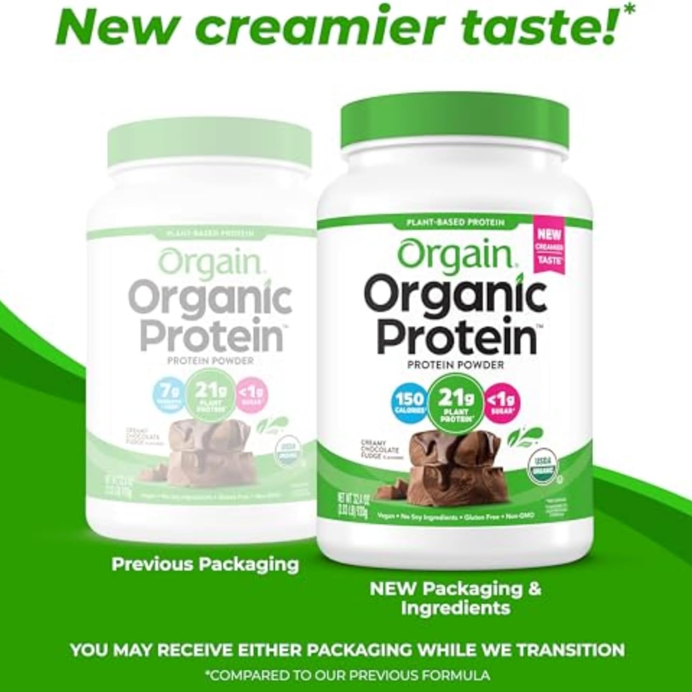 Orgain Organic Vegan Protein Powder, Creamy Chocolate Fudge - 21g Plant Protein, 6g Prebiotic Fiber, Low Net Carb, No Lactose Ingredients, No Added Sugar, Non-GMO, For Shakes & Smoothies, 2.03 lb