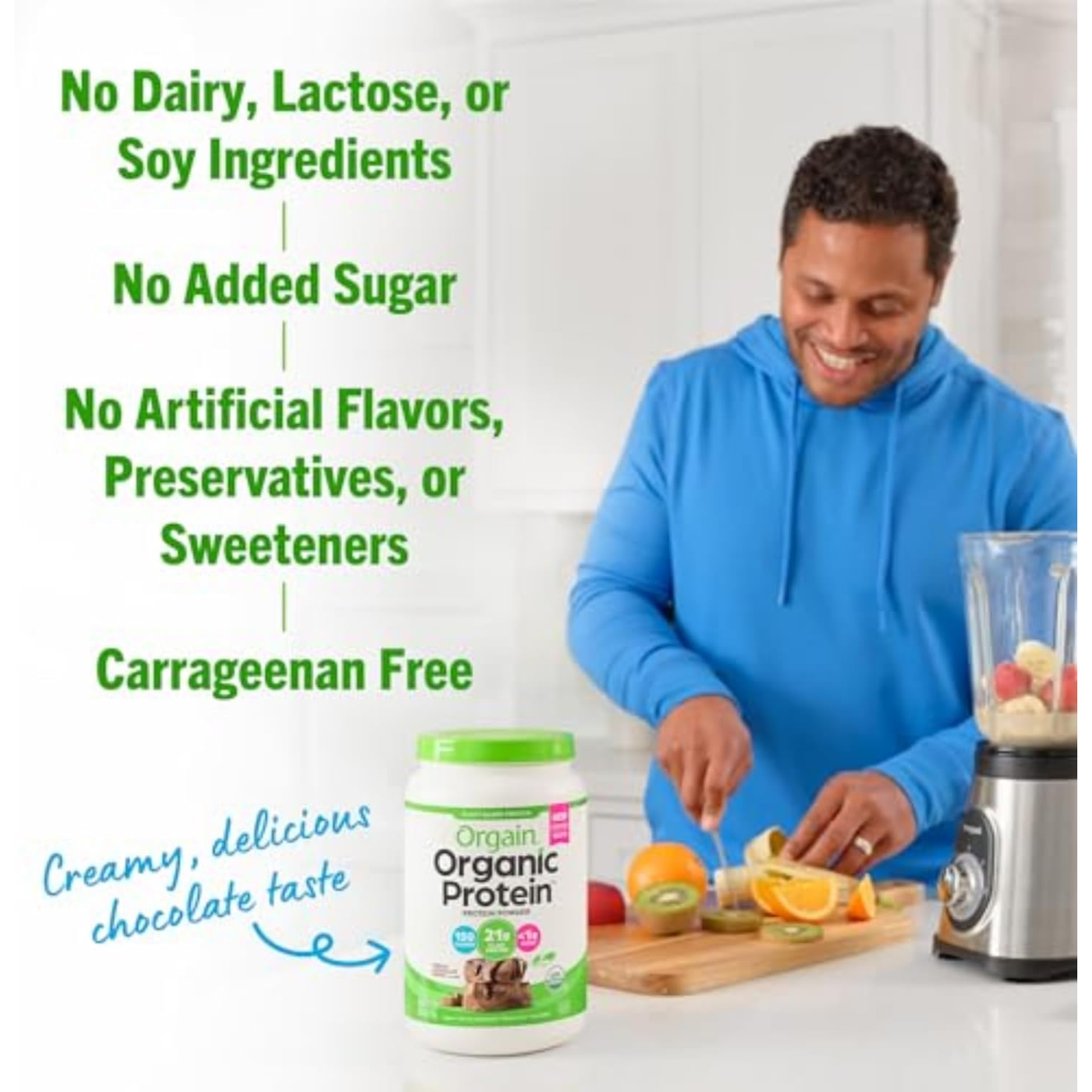 21g of organic plant protein from peas, brown rice, and chia seeds to keep you satisfied and energized