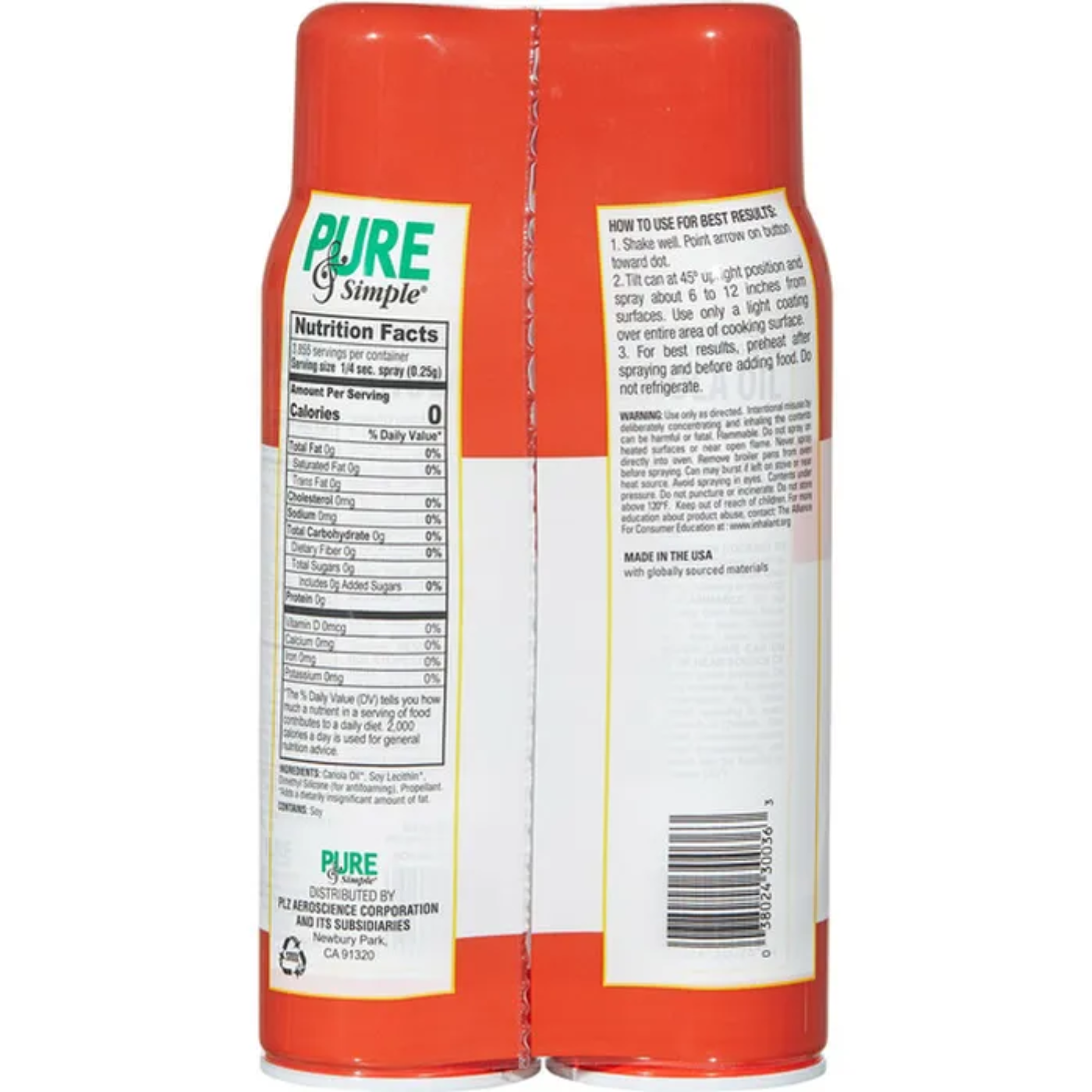 Pure & Simple Canola Oil Cooking and Baking Spray, 17 oz, 2-count