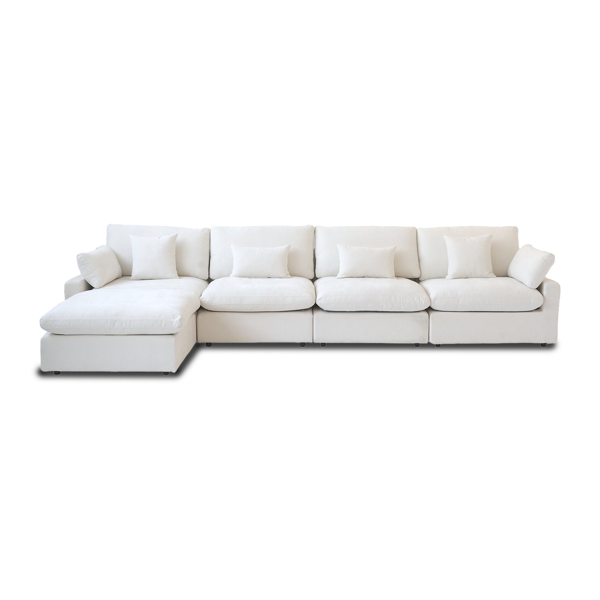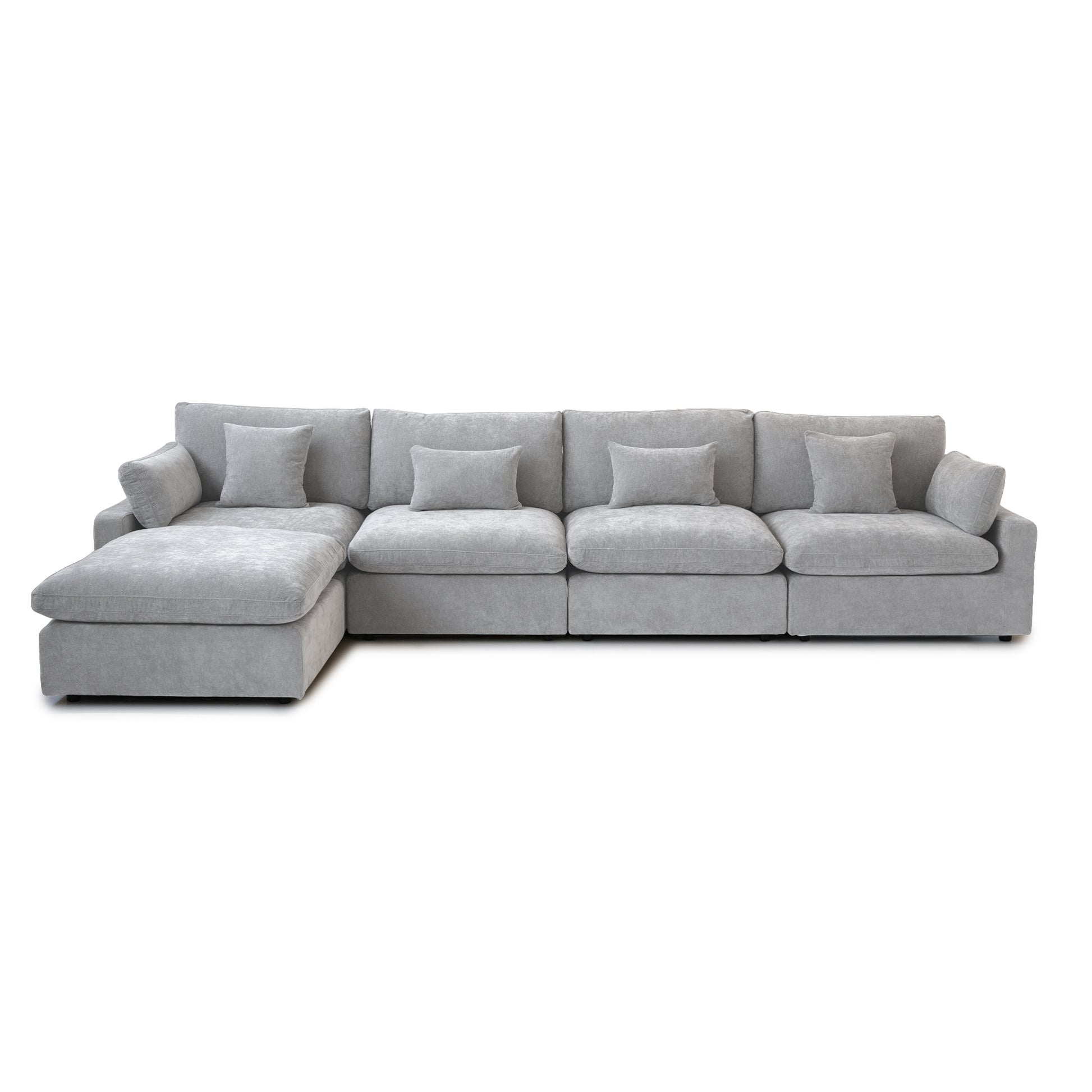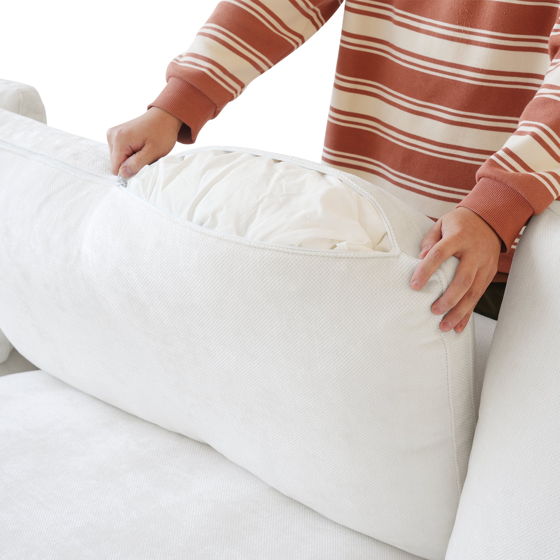Designed for ultimate coziness, this sofa features silky cotton and down-feather cushions for a plush, inviting feel. Machine-washable chenille fabric makes cleanup effortless, while connected buckles let you combine pieces freely to suit any room layout. The premium solid wooden frame supports up to 600 lbs, wrapped in a 5 cm thick sponge layer for added comfort. Multiple configurations—L-shaped, corner sectional, or custom arrangements—ensure your space looks perfect and functions beautifully.